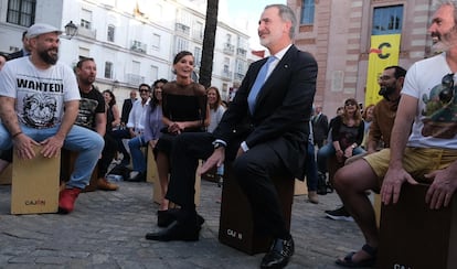 Cádiz rememora el pasado peruano del cajón, instrumento de percusión hoy integrado en el flamenco, como homenaje al mestizaje de la lengua española, en un concierto al aire libre al que se sumó Felipe VI