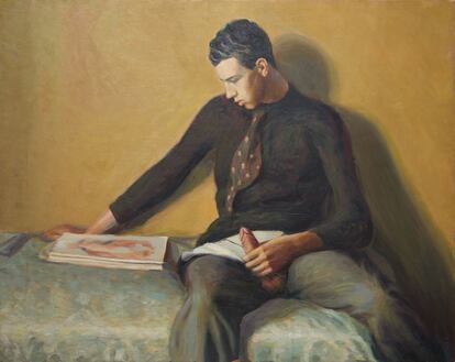 Un joven atractivo de unos veintipocos años, nariz robusta y pelo corto ondulado, con una camisa negra fascista y una corbata, observa absorto una ilustración apoyada en la cama mientras se masturba con la mano izquierda. El cuadro está pintado sobre una tabla y no lleva firma. Pero es único. No solo para los estándares del siglo XX. Sino por lo que representa en el género —normalmente estas obras son de dimensiones pequeñas y sin el detalle y el color— y por su protagonista, que podría haber sido Giuseppe Bottai, ministro de Educación del gobierno de Benito Mussolini, impulsor de la Marcha sobre Roma y altísimo cargo del partido fascista. La obra, que jamás había sido expuesta, es el colofón de una alucinante muestra en la Sapienza de Roma construida sobre un largo trabajo de investigación artística e histórica que redescubre a través de unos 50 cuadros la obra de un joven pintor surgido del futurismo y repudiado luego por el sistema fascista. El eslabón perdido de la vanguardia italiana más relevante.