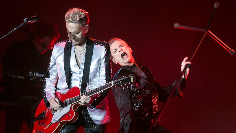 Unos minutos antes de las diez de la noche, pues, Dave Gahan y Martin Gore, acompañados de reemplazos del recientemente finado Andy Fletcher saltaban al escenario al son de My Cosmos is Mine, el corte que abre su último y sorprendentemente brillante disco, Memento mori. El corte, tan áspero e incómodo como brillante, sonaba mientras el sol se ponía en este rincón de la Comunidad de Madrid. Con las pantallas apagadas y el rugoso sonar de los teclados, la banda se presentaba como esa entidad intrínsecamente relacionada con la muerte en que llevan convirtiéndose con éxito desde que su líder, Gahan, estuviera muerto durante tres minutos a mediados de los noventa.