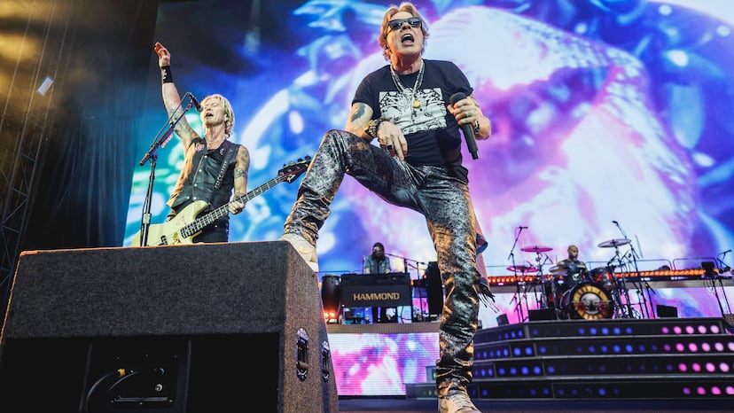 Axl Rose, Slash y Duff McKagan han sobrevivido a demasiadas cosas como para fastidiarla cuando caminan, o ya están, en la sesentena: el vocalista 61 años, el guitarrista 57 y el bajista 59. Superaron las drogas duras, las peleas entre ellos, las trifulcas con los managers, la muerte de compañeros de generación, su personalidad egocéntrica y su propio desgaste. Y siguen aquí, capaces de aguantar un concierto eterno lleno de parafernalia rockista. Incluso mantienen la dignidad estética. McKagan, esbelto, encuerado y con su pelambrera platino; a Slash todavía le sienta bien la chistera, de la que sale una cabellera juvenilmente rizada; el guitarrista que llevan desde 2002, Richard Fortus, se ajusta al talle rockero de Johnny Thunders; toca sensacionalmente los sintetizadores y apoya en los coros una mujer, Melissa Reese…