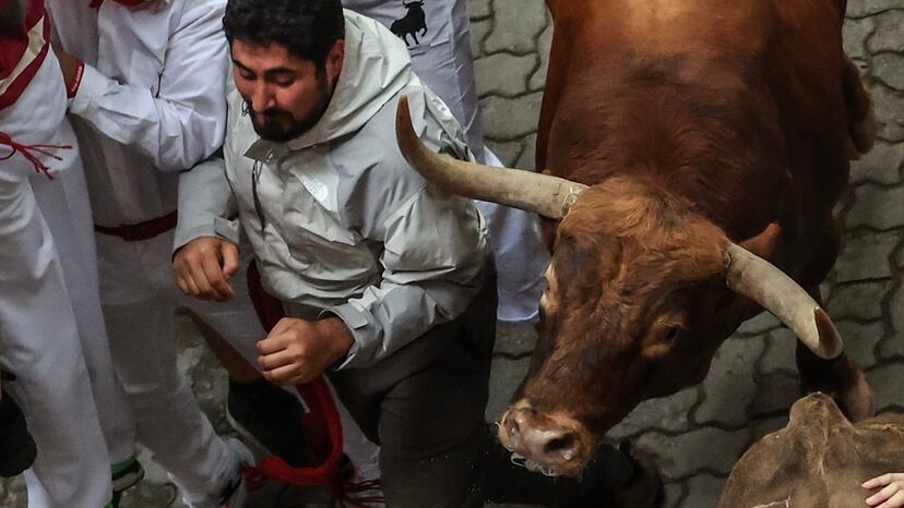 A esas horas, el cabeza de carrera ya casi se había perdido por la calle Estafeta, pegado al costado izquierdo, donde el lunes se produjeron algunas espectaculares volteretas y que hoy estaba limpio de corredores. El toro barrió literalmente la calle, seguido por una manada rota, y, cuando todos se acercaban a la zona de Telefónica, se notaba el cansancio, bajaron el ritmo y la ansiedad y permitieron que los mozos se acercaran sin miedo y notaran la cercanía envalentonada de un toro bravo.