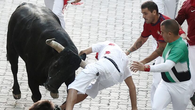 El herido en la pierna estaba en la zona de Telefónica; uno de los toros lo arrolló a su paso hacia el túnel de entrada a la plaza. Empaló al mozo por el muslo izquierdo y lo llevó sobre el pitón durante varios y angustiosos metros. Cuando lo soltó, con el pantalón hecho trizas, no parecía que la herida fuera grave. Entre los contusionados hubo otro herido en un brazo y no por cornada, que se produjo en el ruedo de la plaza y fue atendido en la enfermería.