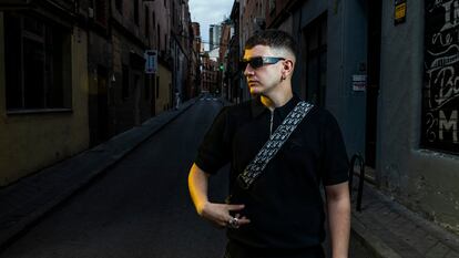 Dejamos a Jero vendiendo jugosas sandías y nos vamos a encontrar con el protagonista, Jorge Escorial (Madrid, 29 años), conocido artísticamente con Recycled J (pronúnciese Resaiquel yi). Estamos a unos metros del mercado, en una cafetería enfrente del bloque donde el músico vive con su pareja, Ana, estilista de moda y la que ha conseguido para su suegro el autógrafo de Vinicius. Ana se encargó de elegir ropa para una sesión de fotos del delantero blanco y allí consiguió la firma. “Sí, mi padre siempre me insiste en que acabe la carrera de Educación Infantil. Me queda muy poco. La dejé en 2017, en cuarto de carrera. Se me juntaron varios factores y no sentía que estaba implicado en el estudio. Por un lado, mi carrera de músico empezaba a despegar. Recuerdo que me salía de clase para atender llamadas de propuestas de conciertos. Además, se murió una prima de forma repentina y me afectó. Fue un momento de inflexión y le dije a la profesora que no volvía”, explica el músico.