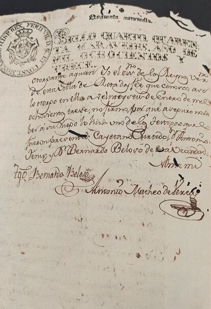 El testamento de Varela es uno de esos documentos excepcionales, aunque no forma parte de los contabilizados por Morgado, ya que él se centró en la ciudad de Cádiz y en la transición del XVII al XVIII. “Un alumno en prácticas lo localizó y nos llamó la atención”, resume el director del Archivo, Santiago Saborido, sobre un hallazgo que se produjo hace años y que ellos ya difundieron por primera vez en redes sociales en 2021. “Aquella vez pasó sin pena ni gloria, pero ahora lo hemos vuelto a publicar y ya suma miles de reproducciones”, añade el archivero, en referencia a la publicación compartida el pasado 28 de julio en X (antes Twitter) y que ya tiene más de 89.000 visualizaciones. La inicial publicación de hace dos años sí sirvió para que el investigador local Joaquín Arévalo reconstruyese los pocos datos que los archivos guardan sobre Varela.