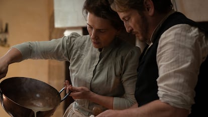 La sensual introducción, al ritmo de los sonidos de la propia cocina, pone sobre la mesa la química entre Juliette Binoche y Benoît Magimel, y basta para intuir que lo que se cuece en la cocina de este château francés es, además de exquisitos platos, una historia de amor reposado y adulto. Durante más de dos horas de película, conoceremos algunas claves de ese amor y de los menús más sofisticados, de un consomé de tuétano de esturión para abrir boca al postre que llaman tortilla noruega, un soufflé de merengue quemado con aguardiente y corazón de helado que cierra el primer banquete.
