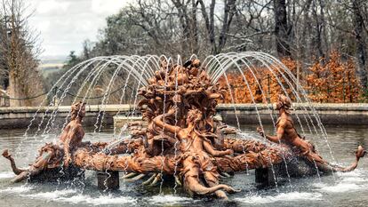 “Olvidaos del reloj. Estamos en el tiempo del agua, en el de su movimiento y su ruido”. Lo dice Luis Vallejo, encargado general del Palacio de La Granja de San Ildefonso (Segovia), mientras camina por los jardines de este real sitio, de 160 hectáreas, que acaba de cumplir tres siglos y que visitan cada año unas 200.000 personas. “La Granja es agua, agua, agua”, subraya. También es la belleza de unas montañas que cautivaron al rey Felipe V en una jornada de caza en 1717. Ese día, el primer monarca de la dinastía Borbón “llenó sus pulmones con el aire de la sierra de Guadarrama, mucho más puro que el de Madrid, y se asombró de la cantidad de agua que había”. El soberano “pasó la noche en la hospedería de los monjes jerónimos, propietarios de las tierras, y en esas horas pensó lo que le gustaría hacer en el lugar que había descubierto”.