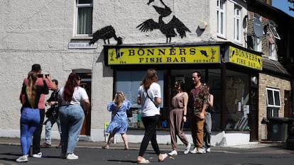 Las otras obras que, de momento, continúan en su estado original son las que representan a tres monos cruzando un puente, balanceándose, en Brick Lane, en el este de Londres, y dos pelícanos dibujados pescando justo encima de un establecimiento que vende el clásico pescado frito con patatas (fish and chips, en inglés) en el área de Walthamstow, al noreste de la capital.