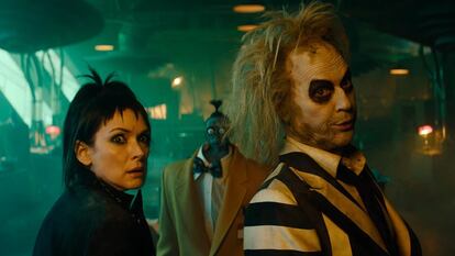 Por ejemplo: sé que vi hace muchos años Bitelchús, pero no logro recordar nada de su argumento. No sé si es problema de mi deteriorada memoria o que no me dejó ni la menor huella. Algo que me ocurre desde hace mucho tiempo con el cine de Tim Burton, incluida su larga e irrelevante militancia, imagino que fabulosamente pagada, en la factoría Disney. Sigo en el limbo respecto al argumento del primer Bitelchús, aunque en este Bitelchús Bitelchús (qué juguetón, qué gamberro es Tim Burton) me parezca reconocer a personajes que debían habitar en la parte anterior. Como el que interpreta Winona Ryder. Con la diferencia de que la ahora cincuentona Ryder allí era una niña. Y también me suena de antaño el desatado tipo que encarna Michael Keaton.