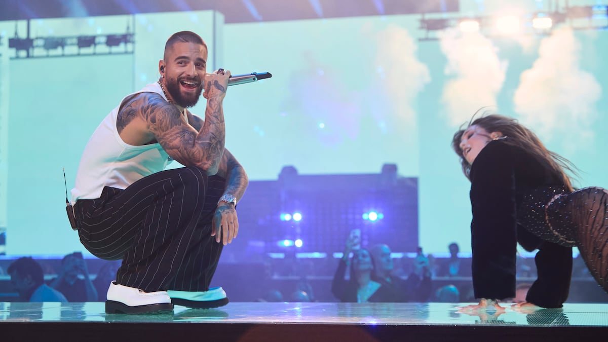 La noche la ha abierto Maluma con una actuación muy esperada y aclamada por todo el público. El colombiano ha dado paso a Estopa, que han hecho cantar a todo el público con clásicos de la talla de Como Camarón. Luego ha sido el momento del artista estadounidense Teddy Swims, que estaba nominado a cuatro premios y que ha cantado uno de sus temas más conocidos: Lose Control. Los primeros premios los ha entregado la influencer Dulceida, que también ha querido “mandar un mensaje de ánimo a los afectados por la dana”. La primera galardonada de la noche ha sido Ana Mena, que ha ganado el premio a mejor canción en la categoría España con Madrid City.