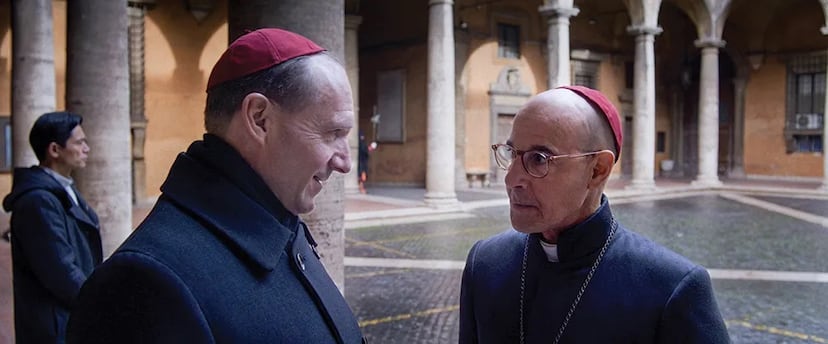 Esta película mantiene durante bastante tiempo el atractivo por disponer de muy buenos intérpretes. De esos actores de reparto que siempre están bien, que te lo crees en cualquier personaje que encarnen. Están el formidable Stanley Tucci y los impecables John Lithgow e Isabella Rossellini. Sergio Castellitto también hace creíble al temible cardenal que pretende resucitar la faceta más mezquina de la iglesia. Y Ralph Fiennes, el protagonista, hace un trabajo sobrio, torturado interiormente, veraz, del hombre de confianza del papa muerto, con la misión de que ese tren tan histórico no descarrile definitivamente, que su Iglesia siga sobreviviendo en épocas que se le han puesto muy chungas, cada vez con menos feligreses.