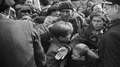 Cuando llega el final de la guerra, una grabación del 29 de marzo de 1939 da cuenta de que en Madrid ha reinado “un terror indescriptible” por los ataques aéreos, que “han asaltado casi a diario la desventurada capital de España”. La voz en off adopta un tono elegíaco: “Una tierra de miedo y desesperación, en la que las llamas de un conflicto despiadado consumieron ciudades enteras”. Y vaticina lo que podía suceder al pueblo español mientras se ve a soldados de Franco repartiendo pedazos de pan entre la hambrienta población de la capital: “Tras la rendición de Madrid, llega la paz. No saben lo que puede presagiar la victoria de Franco, pero la paz les trae hoy pan en lugar de balas”. Quedaban años de muchas balas y poco pan.