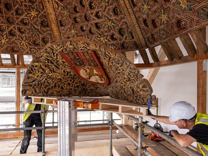 Y ¿ahora qué? Una hipotética recreación del túmulo de Beltrán de la Cueva parece una sugerente y tentadora opción para dignificar los restos originales y generar un nuevo atractivo turístico para la zona… pero no es tan sencillo. “Los políticos locales no podemos hacer todo lo que nos gustaría; las piezas del sepulcro solo las tenemos en custodia, ya que pertenecen al actual duque de Alburquerque, y tampoco sabemos si, en el futuro, el equipo de Gobierno que venga decidirá cuidarlas como nosotros”, duda Maite Sánchez. La responsable de Cultura admite tener “buenas relaciones” con la Casa Ducal de Alburquerque, cuya fundación gestiona en la villa segoviana valiosos archivos a disposición de los investigadores, que abarcan casi un milenio de historia. Sin embargo, Sánchez recela del interés real del aristócrata Juan Miguel Osorio y Beltrán de Lis en los fragmentos de la sepultura de su antecesor: “Desconocemos si el duque va a decidir custodiar estas piezas de una manera distinta a la nuestra”.