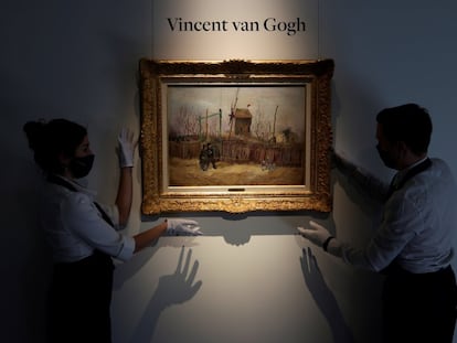 Incertidumbre, cautela, ansiedad, sorpresa… La población mundial se encuentra estos días en un estado de ciclotimia cuyas subidas y bajadas dependen de cómo se despierte esa mañana Donald Trump y las decisiones que tome después del desayuno. El mercado del arte no es ajeno a estos vaivenes emocionales porque sigue sin saber si los aranceles que primero anunció el presidente de Estados Unidos el 2 de abril y luego rectificó el 9, afectan a su materia prima: las obras de arte. El desconocimiento es tal que asociaciones de marchantes británicos, belgas y casas de subastas como Sotheby’s han lanzado comunicados en los que no se ponen de acuerdo sobre si estas tasas aumentarán los precios de cuadros, esculturas, grabados, dibujos… Y cuáles serán las consecuencias. En este momento, solo hay un dato contrastado, las ventas mundiales en este sector alcanzaron los 57.500 millones de dólares (casi 52.000 millones de euros) en 2024, lo que supone un descenso global del 12% con respecto a 2023, según el informe anual elaborado por Art Basel y el banco UBS.