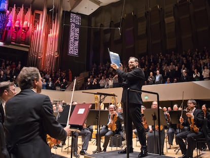 Lo aprendido en ella dejó su huella, sin duda ninguna, en la Sinfonía núm. 10, si bien en esta el planteamiento formal es mucho más ambicioso. Cuando empezó a componerla, Iósif Stalin estaba aún vivo; cuando la terminó, el monstruo ya había muerto y Shostakóvich, el superviviente, se autoafirma una y otra vez con las notas que se corresponden con las iniciales de su nombre y apellido: D-S-C-H (Re-Mi bemol-Do-Si natural). El anagrama no suena nunca a un gesto presuntuoso, prepotente o egotista: es más bien el grito de alivio de quien conocía tan bien el sabor acerbo de la angustia. Antes, en la primera parte, rompiendo la lógica musical y cronológica para finalizar con una nota de esperanza, oímos esa serie de reflexiones sobre la muerte que es la Sinfonía núm. 14. Con la ayuda de varios poetas (García Lorca, Apollinaire y Rilke entre ellos), una orquesta escuálida (una cuerda mínima –5/5/4/3/2–, una celesta y dos percusionistas) y dos cantantes (soprano y bajo), Shostakóvich nos ofrece otra obra testamentaria, terminal, desesperanzada, plagada de contrapunto a dos voces, lo más parecido que quepa imaginar a una lenta travesía nocturna por la laguna Estigia. Extraordinarios Kristīne Opolais y Dmitri Belosselski (Katerina y Borís en la producción de Lady Macbeth del distrito de Mtsensk que ha formado también parte del festival), que cantaron sus textos como sobrios oficiantes de un réquiem lóbrego y privado. Y un bravo final para el violonchelista Valentino Worlitzsch, magistral en sus expuestísimos solos.