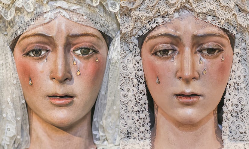“Cuando se actúa sobre una imagen tiene que quedar exactamente igual”, corrobora Navarro Arteaga. El imaginero concede que la virgen necesitaba una intervención ―“había que quitarle el óxido de los barnices”―, y que con los arreglos de última hora “la imagen se acerca mucho a lo que era antes”, pero abunda en esa precipitación por parte de sus responsables y la opacidad. “La Virgen puede volver a su estado natural, pero eso requiere tiempo”, advierte. López ya duda de todo: “Ojalá, pero yo creo que ya la hemos perdido”.