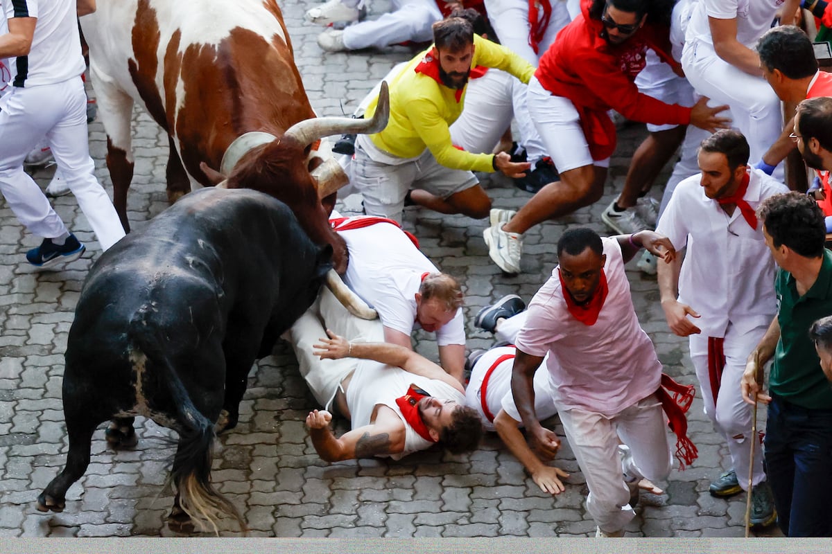 Uno de ellos, de nombre Caminante, de capa negra y 575 kilos de peso, quedó rezagado en la calle Estafeta, ocupada por una muchedumbre que impedía el paso de los animales, y produjo innumerables lances de peligro en distintos momentos del trayecto hasta la plaza. Lo sorprendente es que el balance provisional solo recoja un herido por asta de toro y siete contusionados en hombros, pierna y cara. Las imágenes hablan por sí solas del trabajo a destajo que ha tenido esta mañana el capotillo de San Fermín, que no ha dado abasto para salvar a unos y a otros de los afilados pitones de ese toro, que también ha pasado lo suyo rodeado de extraños, en un terreno desconocido, sin saber hacia dónde tenía que dirigirse.