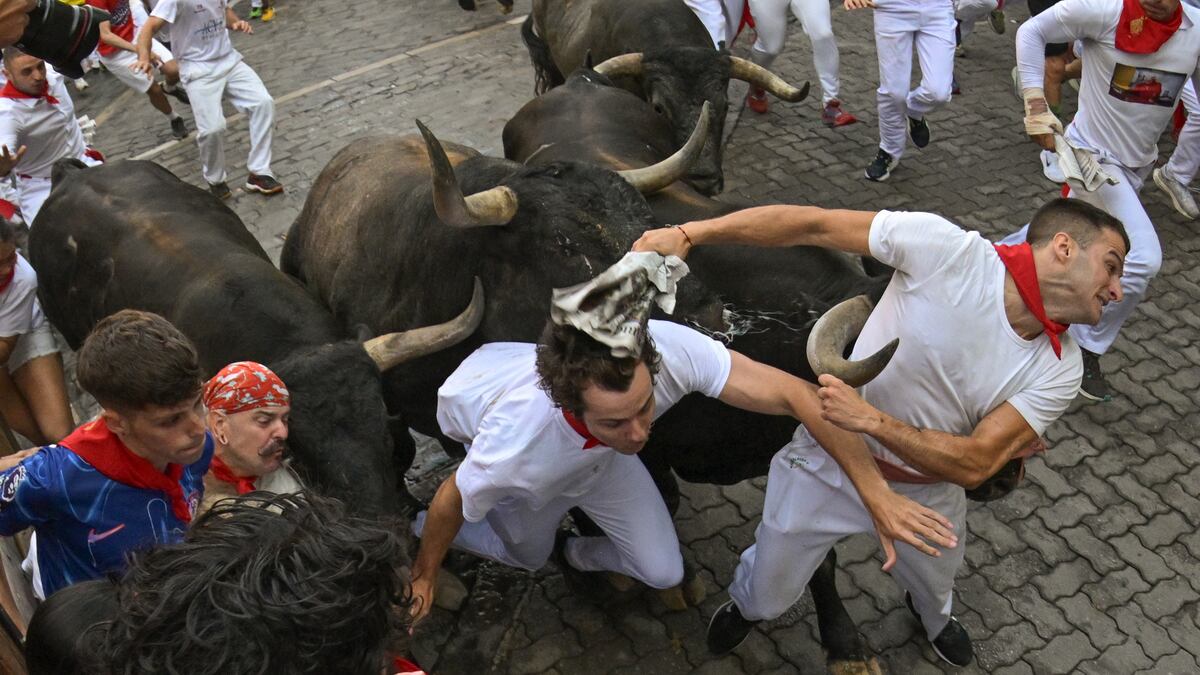 Se han producido atropellos y caídas inevitables, pero no a causa de los toros, sino por las sucesivas y habituales imprudencias de algunos corredores, que o bien entorpecen el camino de los animales o se colocan en los tablones en lugares especialmente indicados como prohibidos. Así ha vuelto a suceder en la entrada al callejón, donde un par de toros han barrido literalmente la madera y arrollado a todos lo que estaban allí apostados.