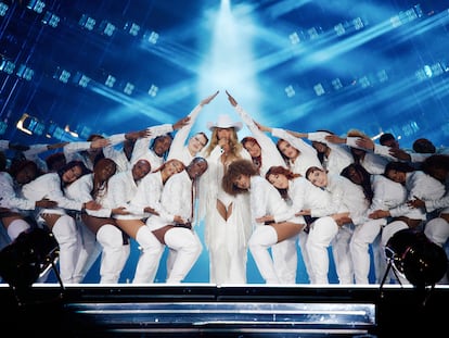 Puede sonar cursi, pero ese es el mensaje y lo que pretende: con su puesta en escena, con su selección de temas (cada uno pensado para un momento de ese recorrido vital) y con los mensajes que transmite a sus fans. En las dos horas, metida en su papel —no hay que olvidar que, al fin y al cabo, también es actriz, y fan del drama—, apenas se dirige al público. Solo lo hace para pedir aplausos, bailes o las manos arriba. Pero cuando se sienta al piano para interpretar Die With A Smile (sin Bruno Mars, pese a que es su vecino, pues tiene una residencia en el MGM Park, enfrente de su estadio), está a punto de romperse. “Gracias a todos por las formas en las que me habéis hecho ser fuerte. Gracias por ser una comunidad fabulosa, gracias por mostrarme tanto amor y tanto cariño. Antes de salir al escenario no podía creerme que estuvierais aquí, que este fuera mi show”, les decía entre lágrimas a sus seguidores.