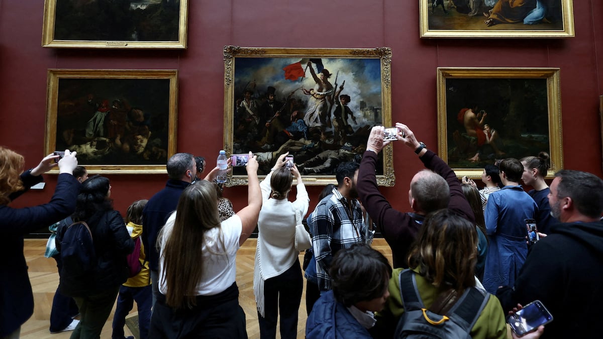 En la acera de enfrente, a orillas del Sena, algunos posaban ante sus móviles con la ventana reventada, ahora cubierta de negro, como telón de fondo. En el interior, el murmullo de un joven guía, con grueso acento francés, relataba el golpe ante un rebaño de turistas, como si ya fuera una parada más del recorrido: “llegaron en dos motos”, “rompieron las vitrinas con una radial”, “lo hicieron todo en ocho minutos y escaparon”, “la pérdida se eleva a 88 millones”. Esta era la estampa del Louvre del día después.