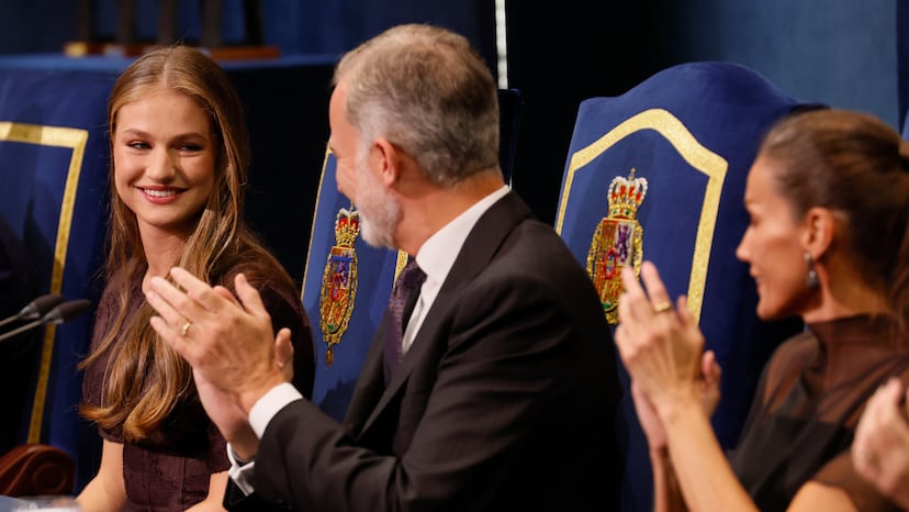 Hace 44 años que el Rey habla desde la tribuna del Teatro Campoamor de Oviedo durante la ceremonia de entrega de los Premios Princesa (antes Príncipe) de Asturias. Los últimos siete años también lo hace su hija, la princesa Leonor, que en este teatro realizó su primer discurso público (tal y como lo hizo su padre en 1981). La princesa “da a cada paso nuevas pruebas de madurez y sensibilidad, con un papel más activo en la vida pública”, reconoció el monarca. “Me corresponde, creo yo, ir cediéndole ya este espacio”, añadió, aunque pretendan, tanto él como la Reina (ovetense), seguir vinculados a los premios y la Fundación Princesa de Asturias. Las palabras indican que el Rey irá perdiendo protagonismo en favor de su hija, puede que no asistiendo a la ceremonia, puede que dejando de dar su discurso. Por ejemplo, al día siguiente, en la visita al Pueblo Ejemplar de Asturias, Valdesoto, las palabras serán de Leonor y no de Felipe.