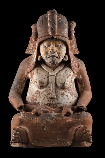 A las 8.30 de la mañana de este viernes, ante el imponente altar de muertos de la Casa de México de Madrid, empezaba una ruta en bus por cuatro instituciones culturales para descubrir en menos de cuatro horas las más de 400 piezas de arte prehispánico que componen la exposición, dividida por capítulos, La mitad del mundo. La mujer en el México indígena. La convocatoria ya daba cuenta de que esto no se trataba solo de un tour expositivo. Pasadas las dos de la tarde, llegó la confirmación de que esas centenares de piezas que reivindican el legado milenario de los pueblos originarios cobraban un sentido más allá del estrictamente artístico.
