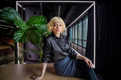Mon Laferte está concediendo entrevistas en la ultramoderna sede de su discográfica en Madrid, rodeada del habitual despliegue de medios y asesores de las grandes estrellas. Y lo es, ciertamente. Esta mujer menuda y a la vez rotunda que se crece dos palmos cuando canta, tiene en su casa cinco grammys latinos y ha vendido cuatro millones de discos. Así que sus colaboradores se adelantan a sus deseos y cuestionan al fotógrafo ideas a las que ella, luego, accede encantada. Se trata de retratar las luces, pero también las sombras de su mirada. Y ella misma las narró ―un padre que la abandonó, una infancia en la pobreza, unos abusos en el ámbito familiar― en el documental Mon Laferte, te amo, estrenado en Netflix en 2024. Resueltas las fotos, Laferte rehúsa el set preparado para la entrevista, con tres metros entre silla y silla, y nos sentamos en un sofá recogido, donde poder mirarnos, incluso tocarnos, durante la charla, que ella caldea con su acento chileno. De diva solo tiene la voz, esa sí, impresionante.