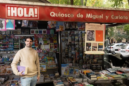 Miguel Sanz (Burgos, 33 años) se pasa 12 horas al día en la calle, al pie de su quiosco. La gente le saluda todo el rato y Sanz conoce los nombres, las caras, detalles de sus vidas y, por supuesto, su periódico de cabecera. Algunos vienen a devolver dinero fiado, Sanz ni se acuerda. Vida de barrio en peligro de extinción, como los quioscos. Pese a las turbulencias del sector, este, en Ortega y Gasset 45, cerca de la plaza del Marqués de Salamanca, Madrid, parece navegar bien.