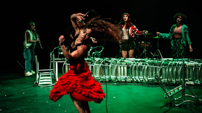 Mención aparte merece la dirección musical de Niño de Elche, que ha compuesto un mosaico flamenco, íntimo y venidero, con el gypsy-rock de los setenta del siglo pasado como masa madre. La música de Las Grecas cruza de varias formas el espectáculo. Hay una contención muy lúcida en lo que podría convertirse en un desparrame. Pero la importancia de lo mínimo, cuando va cargado de significado, es clave y acierto. En lo musical y en la factura total del espectáculo. Las cuatro fabulosas cantaoras (y actrices) que aparecen y desaparecen en un dispositivo escénico, lumínico y musical, completan y condensan con su presencia y voces, esa coherencia dramática que atraviesa Calentamiento.