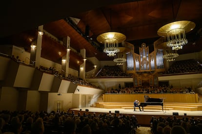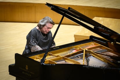 El primer hito musical de la noche lo protagonizó, a continuación, su compatriota Pierre-Laurent Aimard (Lyon, 68 años), con una magistral interpretación de las tempranas Douze Notations pour piano, de Pierre Boulez. Su lectura humanizó el radicalismo del compositor de Montbrison —de quien se conmemora este año el centenario— y lo acercó a sus primeras influencias: Ravel, Messiaen y Webern. Pero fue el virtuosismo de Aimard, junto con su profunda comprensión de esta música, lo que le permitió explorar insospechados matices expresivos, como esos clusters sin pedal en el registro más grave, tocados en pianississimo (ppp), en la núm. 9 Lointain – Calme, que parecían surgir de ultratumba.