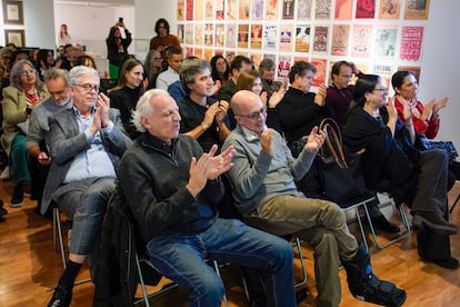 La sala donde se celebró el acto, ubicada en la segunda planta del Instituto México en España (Madrid), acogió una exposición de unas 50 ilustraciones multicolor de México y a un grupo selecto de poco más de 30 personas. Entre ellas se encuentran periodistas y autores como Alex Grijelmo, el escritor mexicano Jorge Volpi y el exdirector de EL PAÍS, Javier Moreno. También asistieron amistades y familiares del homenajeado y algunos becarios de la Universidad de Guadalajara que a partir de hoy están “bajo su tutela”. Todos recibieron al argentino con un caluroso y sonoro aplauso.