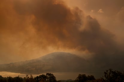 La nube causada por el fuego de Chandrexa de Queixa, en la provincia de Orense (Galicia), durante los incendios que afectaron varios municipios el verano pasado. BRAIS LORENZO