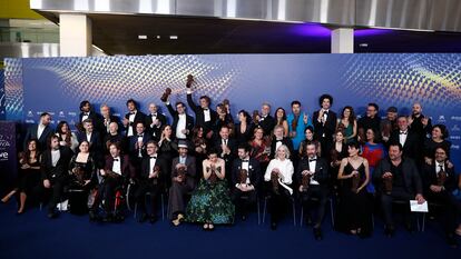Entre el resto de los premios, destacó la volcánica Laura Galán, trofeo a actriz revelación con Cerdita, de Carlota Pereda. Y ha completado así un viaje iniciado en 2017, cuando era adolescente y quedó a tomar un café con su directora. Hicieron un corto que devino en largo, la actriz en el viaje se ha convertido en madre y ha acabado llevándose el premio. Otro intérprete de largo camino laboral, pero poco cine a sus espaldas, obtuvo el Goya a actor revelación: Telmo Irureta, que subió con su silla de ruedas a hablar de dignidad, sexo en la discapacidad y las emociones de haber rodado La consagración de la primavera. Detrás, una de las entregadoras, la actriz Elena Irureta, su tía, le miraba emocionado.