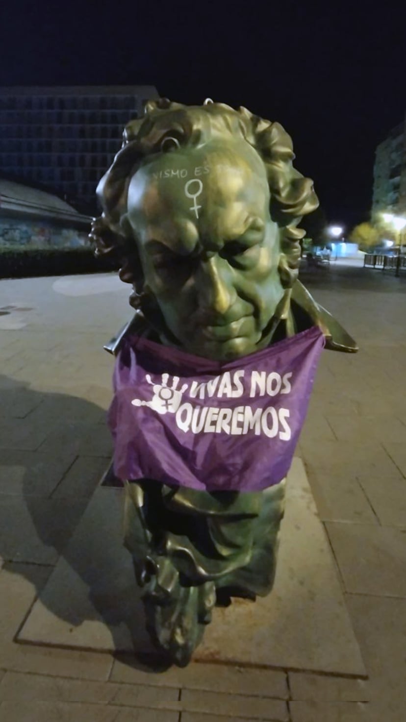 Vandalizados con reivindicaciones sociales los bustos de Goya repartidos en Granada