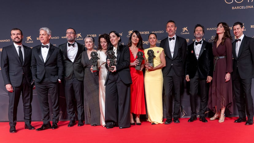 El equipo de la película 'Los Domingos' posa con los Goya obtenidos durante la 40º edición de los Premios Goya, en el Auditori del Centre de Convencions Internacionals, a 28 de febrero de 2026, en Barcelona.Foto: Lorena Sopêna (Europa Press) | Vídeo: EPV