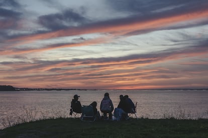 Antes de echarse a la mar, la directora cuenta que los clientes se ven también atraídos por el patrimonio cultural, por los pazos que hay en la zona, algunos visitables como el de Fefiñáns, en la plaza del mismo nombre, en el centro de Cambados. El pueblo, bien de interés cultural, es bonito, es mucho más que un destino con mar, el verano ha quedado atrás. Aquí se camina, todo está a mano, lo que se pide a un sitio así. La torre de San Sadurniño (la Torre, dicen los de allí) vigilaba la costa, prevenía saqueos. Sus restos hoy sirven para guiar a los que se aproximan a ver el atardecer en la ría de Arousa. No hay apreturas, no hay aplausos, no hay negocio; esto no es Ibiza. Ese día de octubre había cinco chavales con sus sillas de camping esperando en corro a que el dulce sol de otoño desapareciera.