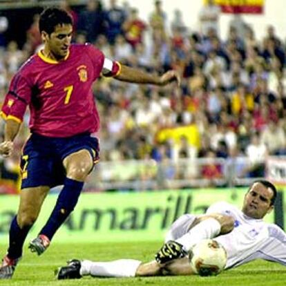 Ni siquiera la magia de Valerón podía romper la barrera que España tenía enfrente. Sáez tardó un cuarto de hora en cambiar las bandas. De Pedro y Joaquín suplieron a Vicente y Joseba Etxeberria con la intención de refrescar las aperturas y ganar en calidad en el centro al área.
