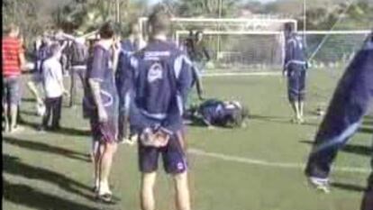 De este modo, el teórico once titular del sábado sería el formado por Casillas, en la portería, Ángel, Javi Navarro, Marchena, Capdevila en la liínea defensiva, Iniesta, Albelda, Xavi y Silva en el centro del campo y en ataque, Fernando Torres y Villa ostentarán la responsabilidad goleadora de la selección. La sesión matinal ha estado centrada en un partidillo de diez contra diez y en un campo modificado donde los jugadores mencionados, a excepción del delantero atlético, se han enfrentado a otro equipo formado por Reina, Sergio Ramos, Puyol,Juanito, Antonio López; Angulo, Xabi Alonso, Cesc, Morientes y Torres. Los únicos sustos del entrenamiento los han dado los valencianistas Carlos Marchena y David Silva, que han sufrido sendos golpes de los que se recuperaron sin problemas acabando la sesión.