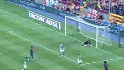 El partido ante el equipo andaluz iba más allá de los tres puntos. Significaba una dura reválida, en la que además de la victoria -imprescindible para no perder el liderato a favor del eterno rival- era necesaria una actuación que restableciera los lazos perdidos con el socio. El Betis, actor secundario en el coliseo azulgrana, no puso excesivas trabas para evitarlo. A medio gas, los andaluces arañaron un punto y pusieron de manifiesto la insultante precariedad de equipo catalán. Y eso que el partido comenzó bien para el Barça. Los suaves pitos iniciales con que acogió la parroquia a sus jugadores se tradujeron en aplausos cuando a los tres minutos, Melli cayó en la treta de un pícaro Deco y derribó al portugués en su internada. Ronaldinho, uno de los grandes señalados tras la derrota de Madrid, ejecutó la pena máxima con firmeza.