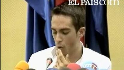 El ciclista madrileño, de 24 años, ha comenzado su comparecencia, dirigida a "amigos, aficionados, medios de comunicación, patrocinadores, organizadores y autoridades", reconociendo su inexperiencia para lidiar con temas ajenos a su profesión. "Los acontecimientos desencadenados tras mi victoria en el pasado Tour me han hecho meditar. Todo es nuevo para mí. Mientras estaba concentrado en la carrera no me daba cuenta de la transcendencia real que supone ganar esta carrera", ha reconocido. "Sólo cuando terminó comencé a tomar conciencia de ello: protección policial, gran cúmulo de gente a mi alrededor, teléfono que suena incansablemente, personas que me solicitan autógrafos y prensa, mucha prensa... para lo bueno y para lo malo", ha afirmado el corredor.