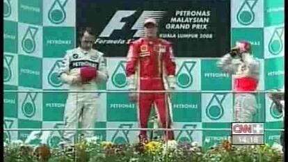 Entonces, con el primer paso por boxes, cambió la historia. Massa entraba en la vuelta 26, y Raikkonen, hasta entonces segundo, se quedaba solo en pista jugando sus cartas: dos vueltas rápidas y un repostaje de 7,9 segundos (uno menos que el de su compañero) le colocaban líder, y Iceman, cómodo al frente, ya no se despegó del primer puesto. Raikkonen ha dejado atrás los errores del pasado, ha sido campeón en 2007 y se siente ganador dentro de la pista. Y eso se traduce en actuaciones como la de Malaisia, donde la presión no era para él, sino para el resto. Felipe Massa fue uno de ellos; acusó el mandato del finlandés, y terminó decepcionando al salirse de pista en la vuelta 28.