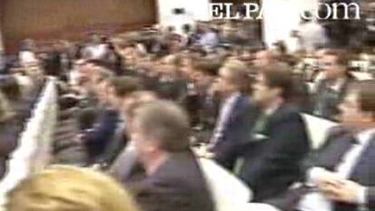 Alberto Ruiz Gallardón, alcalde de la capital, recibió hoy a la plantilla del campeón de Liga, el Real Madrid. El presidente del club blanco, Ramón Calderón, le entregó una camiseta del Real Madrid.