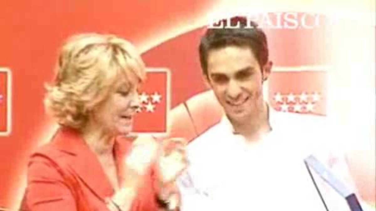 El ganador del Giro de Italia 2008, Alberto Contador fue recibido en la Puerta del Sol por más de 2.000 personas que coreaban al unísono 'No somos uno, no somos dos, somos el pueblo de Contador'.