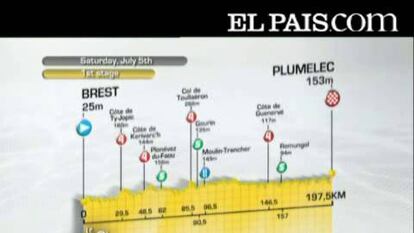 En la Cota de Ty-Jopic (km 29) el retraso del grupo marcaba más de 8 minutos. Un ritmo elevado, con las fuerzas aún intactas, que permitió cubrir 43 kilómetros en la primera hora de carrera. Enseguida algunos equipos empezaron a mostrar sus intenciones. El Caisse D''Epargne de Valverde, el Credit Agricole de Hushovd y el Rabobank de Freire se turnaron en cabeza de pelotón hasta estabilizar el retraso en torno a los 4 minutos. La etapa inaugural prometía un final muy goloso para los hombres rápidos. No era día para las concesiones.