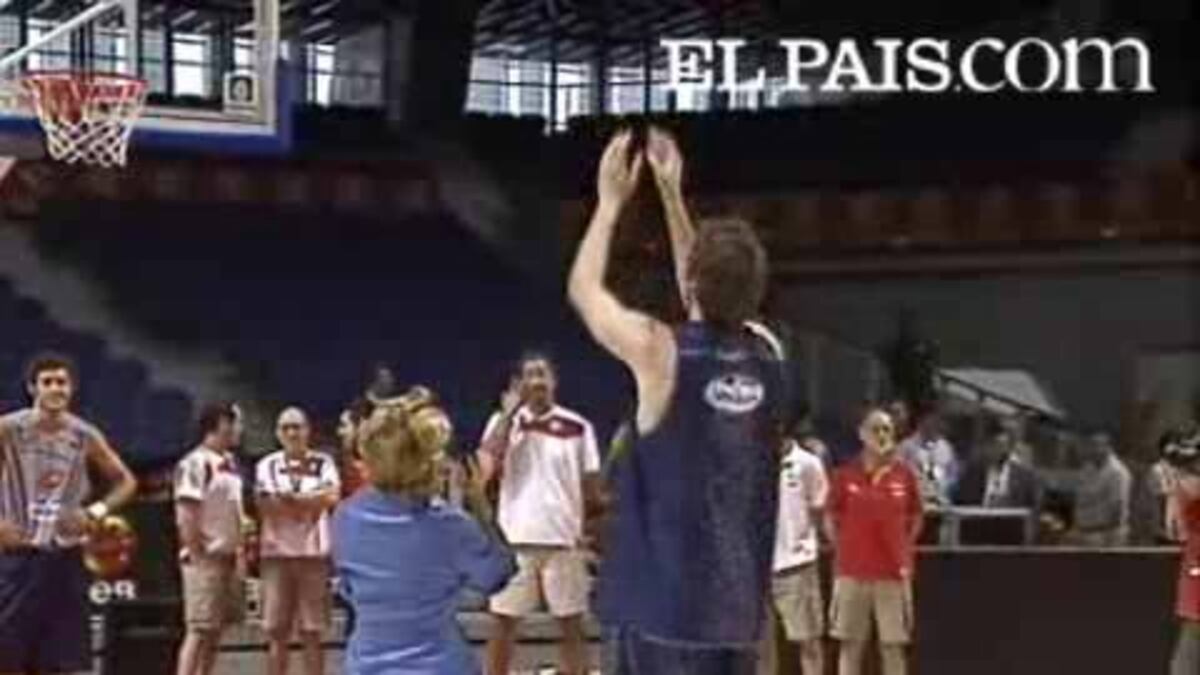 La presidenta de la Comunidad de Madrid, Esperanza Aguirre ha visitado esta mañana a la selección española de baloncesto durante su entrenamiento en el Palacio de los Deportes