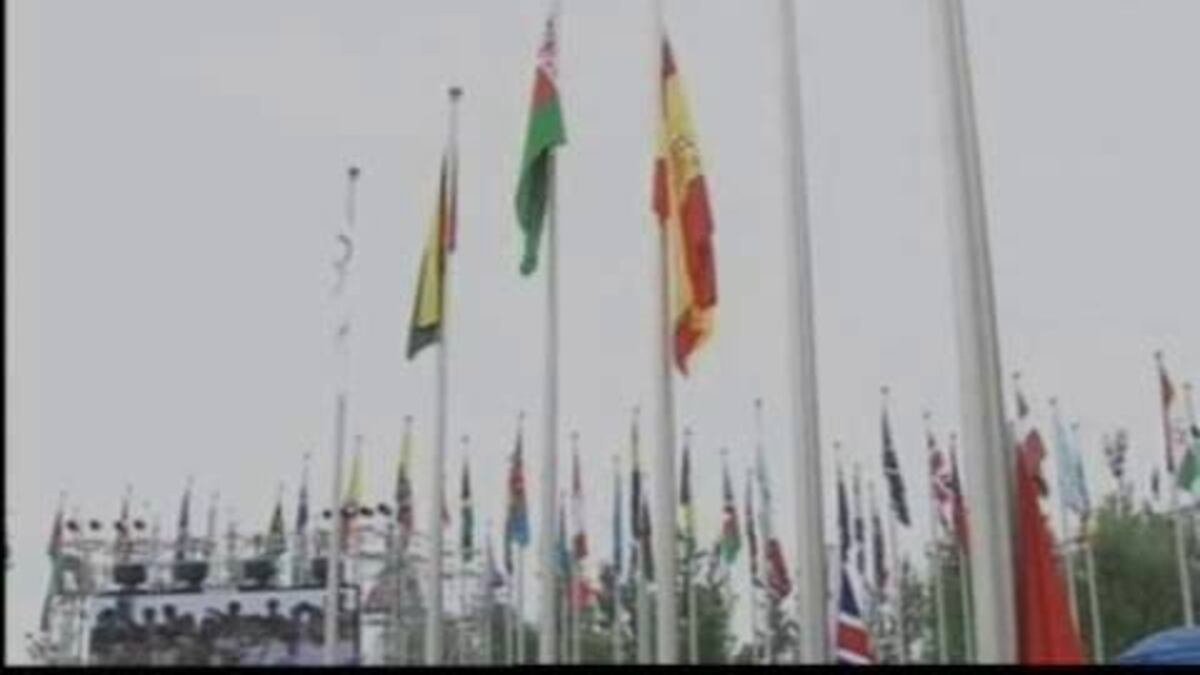 La delegación española en Pekín celebra con entusiasmo el izado de la bandera