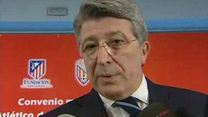 Además ha querido aclarar que "el Atlético está muy tranquilo en el aspecto institucional, en este momento sólo tiene un problema de resultados. No me importa quién va a ser el presidente del Real Madrid, ni si hablan de que el "Kun" Agüero va a ser contratado. Sí os pido que no hagáis esta pregunta cada 24 horas". Y en cuanto a la supuesta polémica con la posible destitución de Aguirre, ha asegurado que está "con el entrenador absolutamente. No he escuchado las declaraciones de Forlán (sobre que son los jugadores quienes tiene que sacar del bache al equipo), pero si un futbolista lo dice será verdad. Sí creo que son los jugadores los que deben empezar a demostrar lo que realmente valen. Este es un equipo muy fuerte y estos últimos resultados se han producido por voluntad de todos. Pero no hay crisis".