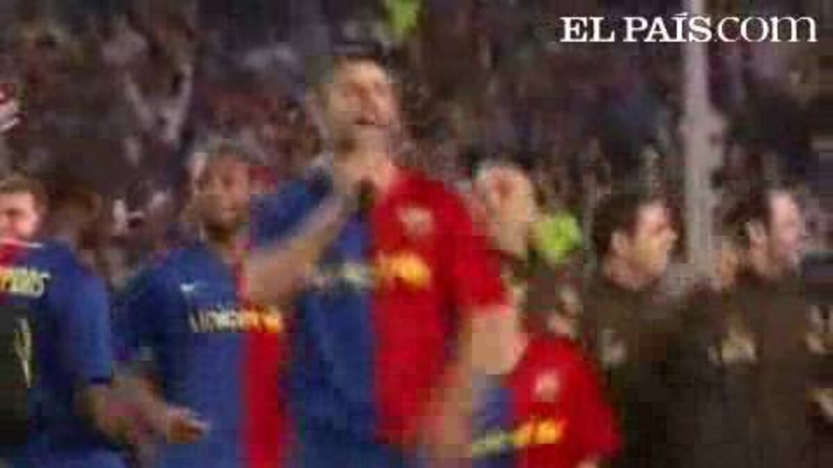 A falta de juego y de fútbol, el protagonismo lo asumió el árbitro, cuya actuación provocó la rechifla y la bronca de la hinchada. El colegiado recordó la disputa de un partido que a veces pareció que se jugaba porque no había más remedio, al menos desde el bando barcelonista, porque a Osasuna le iba el descenso en el litigio, y bien pronto que se notó. El riflePandiani cabeceó a la red un saque de esquina botado por Plasil ante la indiferencia de la zaga del Barcelona, petrificada nuevamente en una acción a balón parado. Los azulgrana formaban con un equipo tan irreconocible que se escucharon unos cuantos pitos en la grada, sorprendida por el juego de sus futbolistas, muy lejos incluso de la actuación protagonizada en Mallorca. Aunque se juntaron prácticamente los mismos que el domingo pasado, anoche ni atacaban ni defendían, diseminados en la cancha, faltos de tensión competitiva, de presión y agresividad, y también de lucidez y finura. Mal asunto cuando las órdenes las da Eto'o, inigualable en el área contraria, estupendo en el acoso al central o al lateral y, por contra, insoportable cuando se pone a mandar, cuando luce el brazalete de capitán.