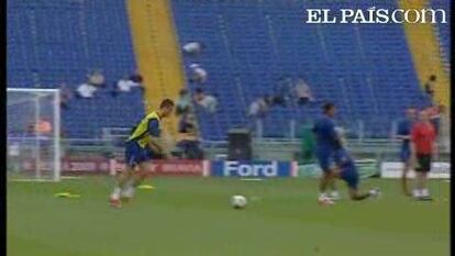 Uno de los jugadores estrella del Manchester, Cristiano Ronaldo, acaparó ayer todos los objetivos de las cámaras durante el entrenamiento