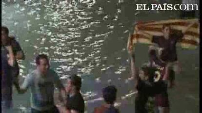 Decenas de aficionados del Barcelona que habían viajado a Roma para ver la final de la Liga de Campeones, celebraron el triunfo ante el Manchester United con un baño en la Fontana de Trevi.