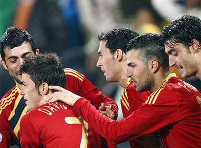 A falta de adversarios con hueso, a España le basta con cierta firmeza para batir récords y multiplicar su predicamento futbolístico . De momento, para eso le ha servido la primera fase de la Copa Confederaciones, en la que ayer, ante Suráfrica, encadenó su 15ª victoria, un registro que jamás había logrado selección alguna, y cerró su 35º encuentro sin perder, una marca que iguala la conseguida por Brasil entre diciembre de 1993 y enero de 1996. Dos datos que certifican el extraordinario tránsito de una selección que ha alcanzado cotas impensables hace no muchos años, cuando su aspecto resultaba deprimente. Hoy no defrauda: gana con una asiduidad pasmosa y, lo que es más relevante, sin renunciar a un estilo que despierta aún más admiración que sus estadísticas. Frente a Suráfrica le sirvió un poco de rigor y el picante justo a la espera de que el torneo alcance su graduación a partir del miércoles, cuando dirimirá la semifinal.